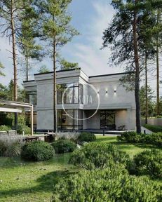 Загородный дом в стиле "минимализм" расположен на лесном участке. Лаконичный фасад, отделанный натуральным камнем, с панорамным остеклением. В доме спланировали 4 спальни, гостиную с камином и вторым светом, кухню-столовую, просторные террасы, сауну с комнатой для отдыха, гараж на 2 м/м. На участке выполнен ландшафтный дизайн, выложены дорожки и уложен газон.