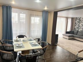Дом очень светлый, теплый и уютный благодаря высоким потолкам и панорамным окнам. Стильный интерьер полностью укомплектован мебелью и бытовой техникой. Дом произведен из качественных материалов по канадской технологии знаменитой фирмой Терем, хорошо утеплен, поэтому внутри всегда комфортный микроклимат. На первом этаже и во всех санузлах сделаны теплые полы. Отопление и ГВС дома от газового котла с резервным электрическим котлом. Выделенная эл. мощность 15 кВт. Для резервного эл. снабжения установлен генератор 8 кВт, с автоматическим запуском.