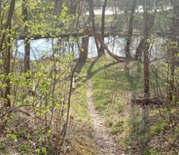 Спуск к реке Каширка и роднику, есть место для купания, река родниковая.