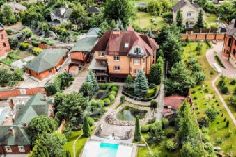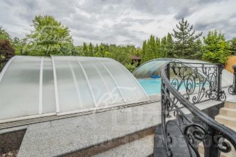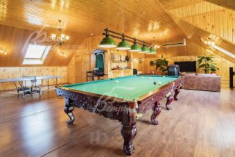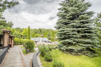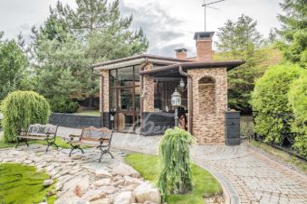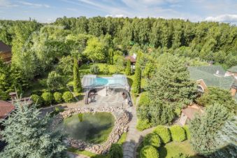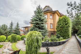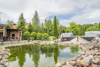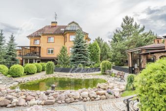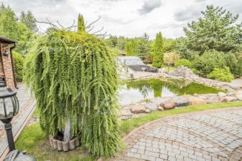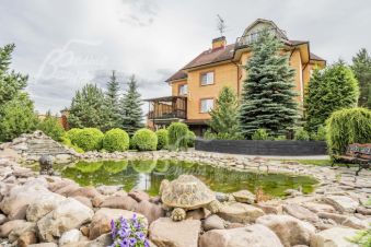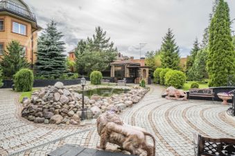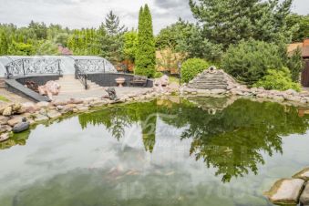 Код объекта в БД Агентства: 323-409. Росинтер к/п. Качественный дом в классическом стиле, построенный "для себя"! Престижные мебель и отделка. Красивейший вид с участка на окрестности. На участке организован прекрасный ландшафтный дизайн: зонирование, десятки ухоженных деревьев и кустарников, дорожки, освещение, летний бассейн с подогревом и навесом, декоративный пруд с фонтаном и рыбками, две беседки, мраморные скульптуры. Поселок расположен в тихом месте. Квартира для персонала.