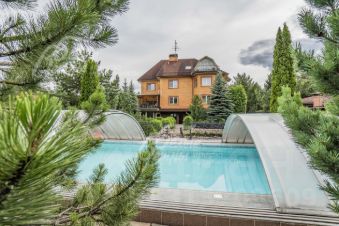 - Летний бассейн на улице с подогревом, противотоком и подсветкой 5х8 м (оборудована очистка воды в бассейне)..