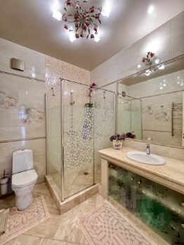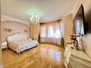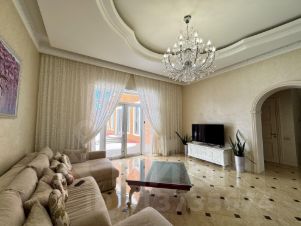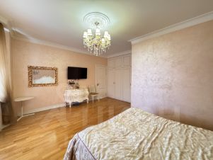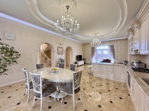 Коттедж для проживания большой семьи с персоналом. Большой, добротный дом, с большим бассейном, в строго охраняемом поселке Чистые пруды.всего Выполнена отделка премиального уровня (мрамор, итальянская декоративная штукатурка). Дорогая мебель. Земельный участок с богатым ландшафтом и беседкой-барбекю с настоящим тандыром. Коттеджный поселок с центральными коммуникациями, недорогие поселковые платежи. Отличная транспортная доступность - 30 мин. в любое время до Москва-Сити по платной трассе. Пешком до частной школы Премьерский лицей, 12 мин. на авто до известных школ МЭШ и гимназии Василия Великого. Материал стен: щелевой кирпич двойной. Воздушный зазор между облицовкой. Облицовка стен: облицовочный кирпич Wienerberger (Германия) с эффектом велюра. Стадия готовности: меблирован. Описание внутренней отделки: дорогостоящая отделка в классическом стиле с использованием натуральных материалов - много турецкого мрамора Crema Nova толщиной 3 см (две кухонные столешницы по 7 м, в 5 санузлах 2-х метровые столешницы, 68 подоконников, ступени лестницы). На стенах декоративная штукатурка с использованием премиальной итальянской краски Ottocento. На полу паркетная доска и керамогранит. Лестница на бетонном основании, отделана мрамором, сорт chema nova (бежевый с фиолетово-бордовыми прожилками), кованные перила. Двухуровневые потолки с подсветкой и лепниной. Установлена сантехника премиальных брендов Jacob Delafon; Roca, смесители Нansgrohe. Все коммуникации разведены под ключ, радиаторы - Kermi, электрика - Legrand. Межкомнатные двери (высотой 2.1 м), арки, встроенные шкафы на 1 и 2 этаже выполнены в едином стиле и изготавливались на заказ российским производителем элитного сегмента. Инженерное обеспечение: в доме установлены газовый котел WOLF на 110 кВт, бойлер Refleks на 500 л и мощная комплексная система очистки воды 6 баллонов. В гостиных установлены кондиционеры DAIKIN. В бассейне: приточно-вытяжная вентиляция со встроенными осушителями SYSTEM AIR Швеция. Автоматическая водоподготовка в бассейне (хлор, РН, УФ). Чаша бассейна имеет круговой обход, также снизу - легкий доступ в случае необходимости отремонтировать, например нарушенную гидроизоляцию. Мебель, оборудование: дорогая итальянская мебель в гостиной, столовой и кухне: Обеденная группа, диваны, тумба под телевизор фирмы MERONI (Италия). Мебель в спальнях фирмы AVANTI, VOLPI (Италия). Кухня и встроенные шкафы на 1 и 2 этаже выполнены в едином стиле (с резьбой, цвета топленого молока, МДФ с резьбой) и изготавливались на заказ российским производителем. На кухне мраморная столешница толщиной 3 см, встроенная техника BOSCH. Итальянские люстры с хрусталем, светильники. Тип участка: с деревьями и ландшафтом. Благоустройство участка: на участке выполнен богатый ландшафтный дизайн: высажены крупномерные голубые ели 5 шт., ёлки 15 шт., туя (конус) 15 шт. высотой от 5 до 10 м, можжевельник, туя (круглые) 10 шт., сосна, 3 яблони, 2 груши, множество кустарников, ухоженный газон.