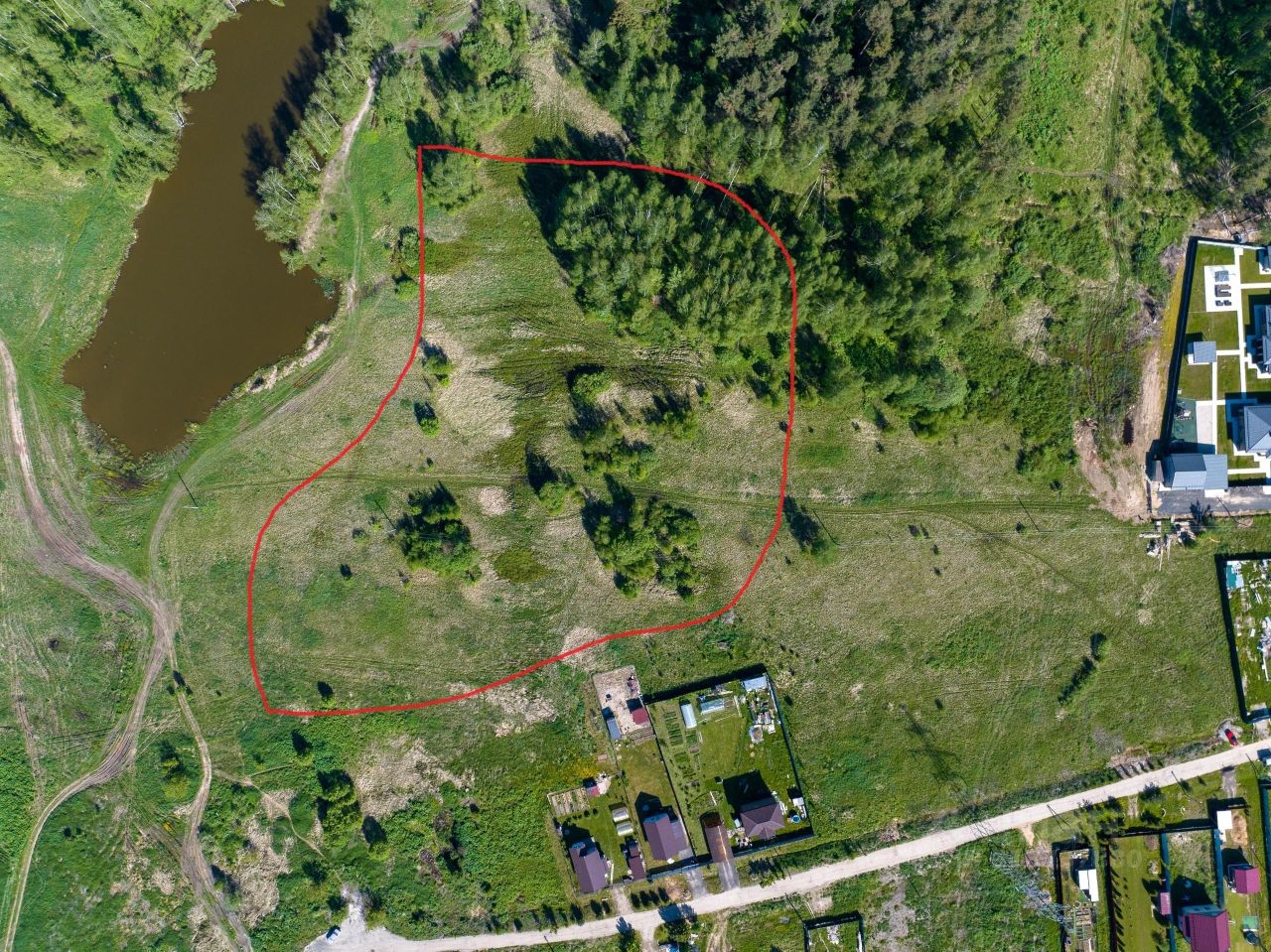 Часть участка граничит с лесом и озером, часть участка на поле.