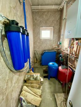 Электричество 15кВТ, вода скважина 16м. на участке, в доме установлены фильтрация воды, канализация переливные кольца по 2,5метра. Отопление электрическое и твердотопливное, отопление разведено по всему дому установлены радиаторы, бойлер воды на 200литров.