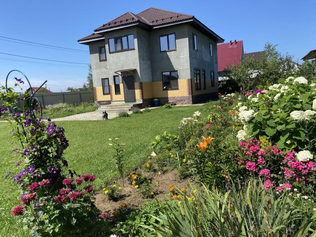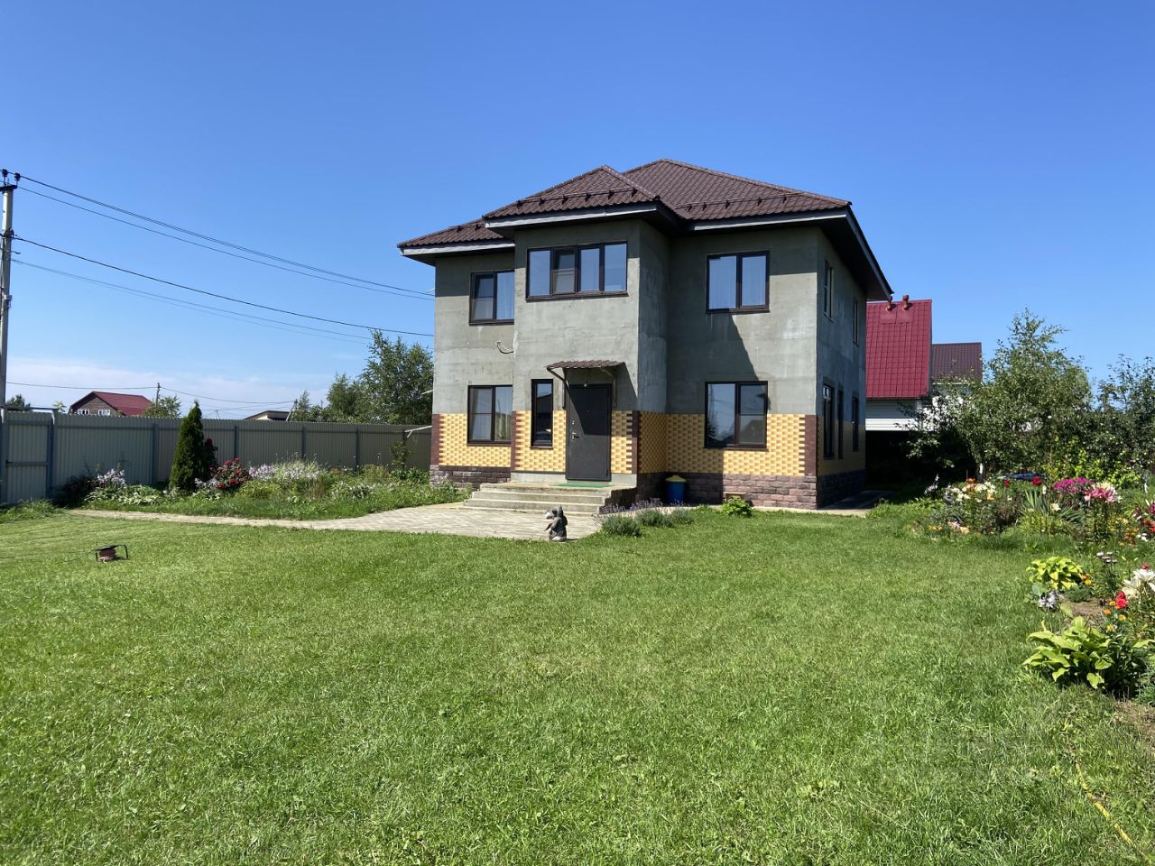Общая площадь дома 176 кв.м., дом построен в 2019г. Фундамент монолитная плита 1 метр в земле, стены пеноблок + утеплитель пеноплекс + отшкукатурен (облицовка плитка на весь дом в наличии). В доме 2 полноценных этажа, перекрытие ж/б панели, большой чердак. Отмостка дома забетонирована.