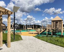 • На территории посёлка свои детская и спортивная (баскетбол/футбол, воркаут) площадки. Большая общественная зона барбекю с навесами и террасами.