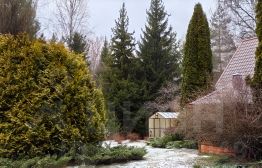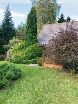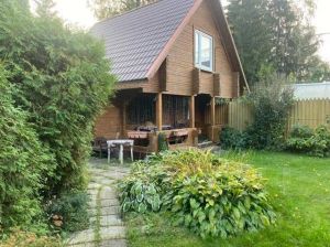 На участке располагается: 2-х этажный дом, 2-х этажная баня, гараж (100м2), беседка для отдыха, небольшая теплица, беседка для мангала, площадка для автомобилей. Все постройки выполнены в едином стиле. Также на территории высажены плодовые и декоративные деревья и кустарники, цветочные клумбы. За участком расположен небольшой пруд (выход сразу с участка).