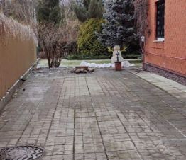 Дом построен из бруса, 1й этаж снаружи облицован кирпичом. Монолитный фундамент, крыша металлочерепица. В дом заведены все коммуникации: магистральный газ, электричество (3 фазы, 15Квт), вода (колодец на 8 колец), септик, система очистки воды, газовое отопление, кондиционирование (сплит-системы), интернет.