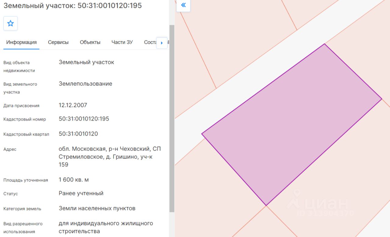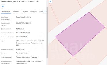 Продаётся участок 16 соток ИЖС, кадастровый номер 50:31:0010120:195