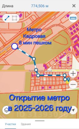 В 2025 - 2026 году будет открыта станция метро Кедровая, 8 минут пешком.