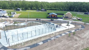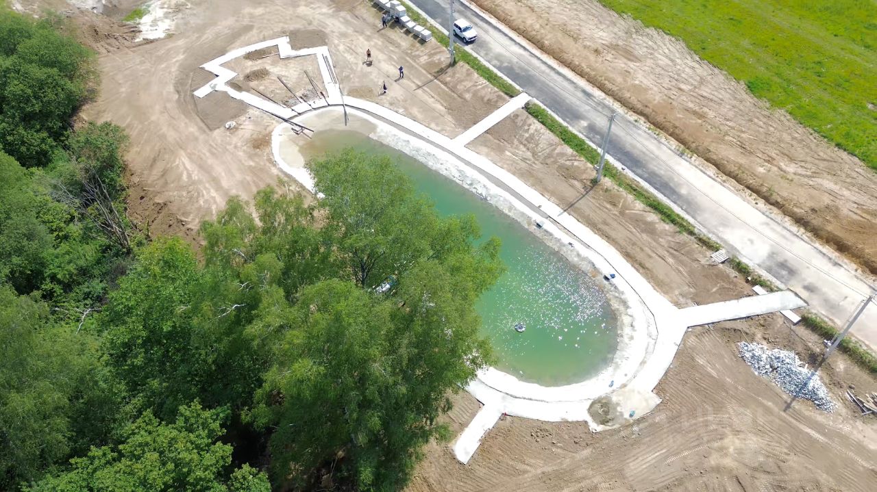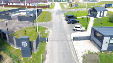 Въезд через КПП с круглосуточной охраной и видеонаблюдением. Построены дороги, выведена система водоотведения. Территория благоустраивается детскими и спортивными площадками. С территории поселка открывается живописный вид на храм на холме.