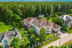 1 этаж: большой холл с парадной мраморной лестницей, лифтом, гардеробной и выходом в сад; гостиная с эркером, кухня-столовая, каминный зал, кабинет, бильярдная с выходом в сад, спортзал с теннисным столом, раздевалка, СПА-зона: хамам, финская сауна, душевые, с/у; лестница на второй этаж в зону отдыха, постирочная, бойлерная, гараж на 3 а/м с оборудованной квартирой для персонала на втором этаже и с отдельным входом;