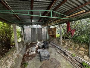 На участке помимо дома расположен кирпичный сарай, душ и туалет. Имеются дорожки и парковочная площадка для автомобиля.