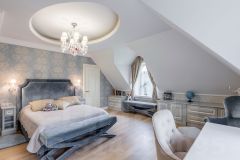 2 этаж: мастер-спальня с с/у и гардеробной, спальня с с/у и гардеробной, 2 спальни с с/у; 3 этаж: 2 спальни с/у.
