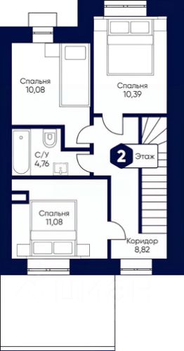Второй этаж: две комнаты, гардеробная, две ванных комнаты.