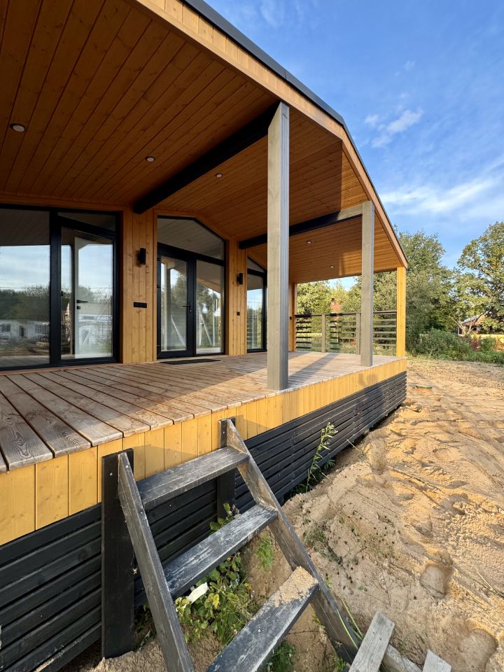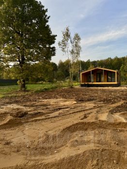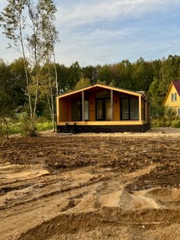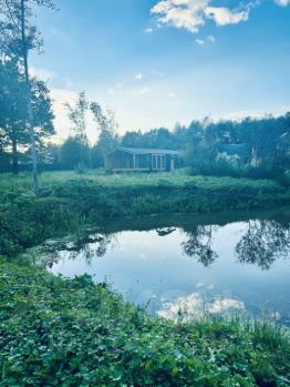 По границе участка расположен пруд наслаждаться которым вы будете на крытой деревянной террасе площадью 22 кв.м. или из комнат с панорамным остеклением. Компактный, 90 кв.м., дом с чистовой отделкой, порадует вас кухней-гостиной со вторым светом, тремя комнатами, просторным холлом и вторым входом с отдельной прихожей. В доме есть вся необходимая сантехника: душ, туалет и раковина. Дом построен по каркасной технологии, фундамент свайно-винтовой с металлической обвязкой.