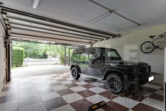 Основной дом площадью 630 м² из кирпича с черепичной крышей и гаражом на 3 автомобиля.
