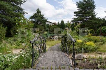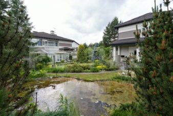 Участок 30 соток включает в себя: ландшафтный дизайн, декоративный пруд с водопадом, зону барбекю.