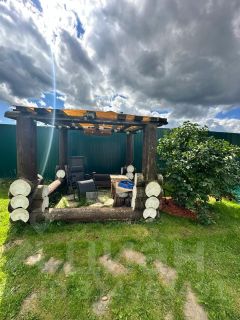 В дальнем конце участка обустроена бревенчатая летняя кухня. Есть небольшой спортивный уголок. комплект садовой мебели.