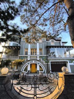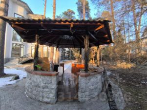 Участок ровный с ландшафтным дизайном и с беседкой-барбекю и домом для охраны.