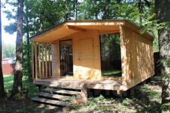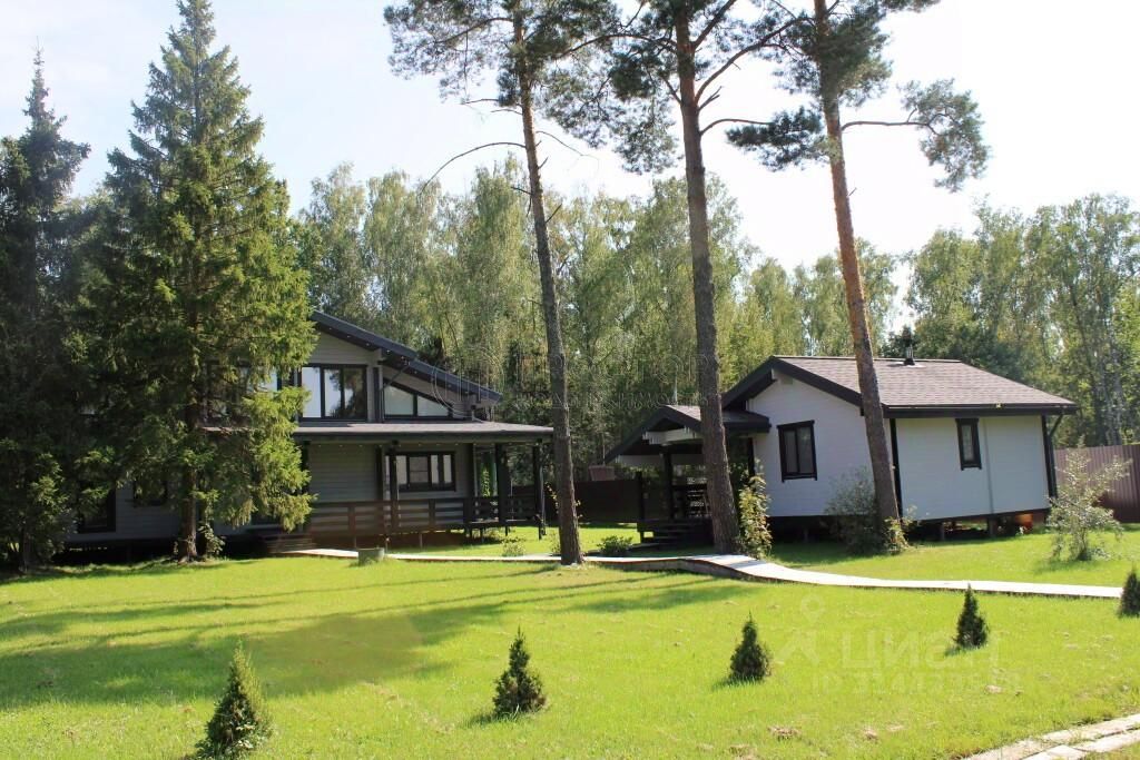 Участок площадью 18 соток включает в себя дом, баню, открытую беседку на 40 м² и домик-бытовку, который можно переоборудовать в гостевой дом. Перед домом разбит газон, а площадь всех веранд составляет 146 м². С участка есть выход в лес, где растут сосны, рододендроны и облепихи.