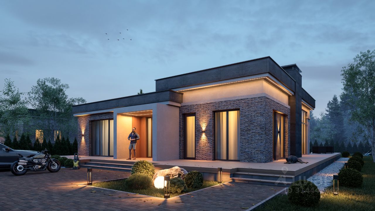 Дом площадью 144 квадратных метров построен на земельном участке 10 соток. Современный дом в стиле минимализма - чёткая геометрия, преобладание горизонтальных линий, монохромная отделка с деревянными вставками, открытая терраса - создают