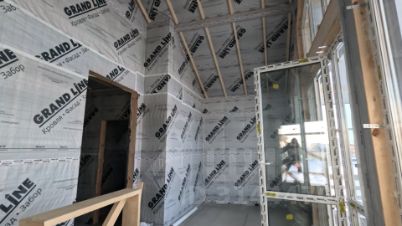 - Высокие потолки в доме, от 3.2 до почти 5 метров в коньке, построен под теплые полы