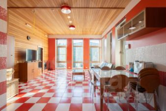 На втором этаже полы выполнены из натурального массива дерева. Спальни отделаны лиственницей, создающей ощущение близости к природе. На первом этаже, где уложена плитка, установлен подогрев пола, что делает пребывание в доме комфортным даже зимой.