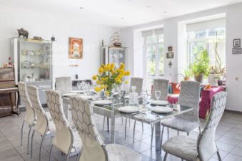 В доме 6 просторных спален, 4 ванные комнаты, каминный зал с дровяным камином.