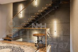 Конструктив: фундамент лента/монолит, стены — кирпич, отделка фасада — фасадный кирпич ручной формовки, фактурные панели, кровля — сланцевая (Metrotile), установлены водосточная и сливная системы, трехкамерные энергосберегающие стеклопакеты.