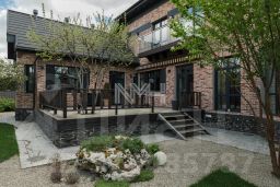 20 соток с ландшафтным дизайном, вымощены дорожки, установлено фонарное освещение, На участке расположены отапливаемая беседка с панорамным остеклением, оборудованной кухней и зоной барбекю, хозблок.