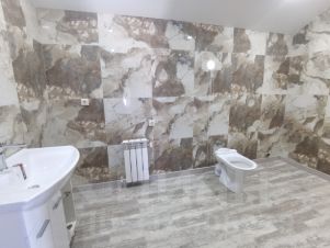 В комнатах на полу ламинат, рассчитанный под температуру теплого пола, потолки натяжные, стены - идеально ровные под красивые дорогие обои, санузел отделка испанская плитка керамогранит.