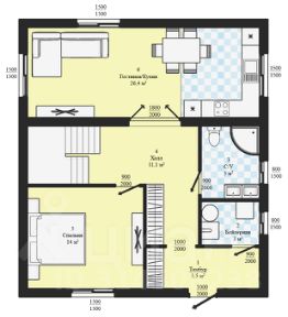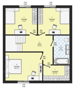 - Толщина внешних стен: 300 мм. Толщина межкомнатных перегородок: 200 мм.