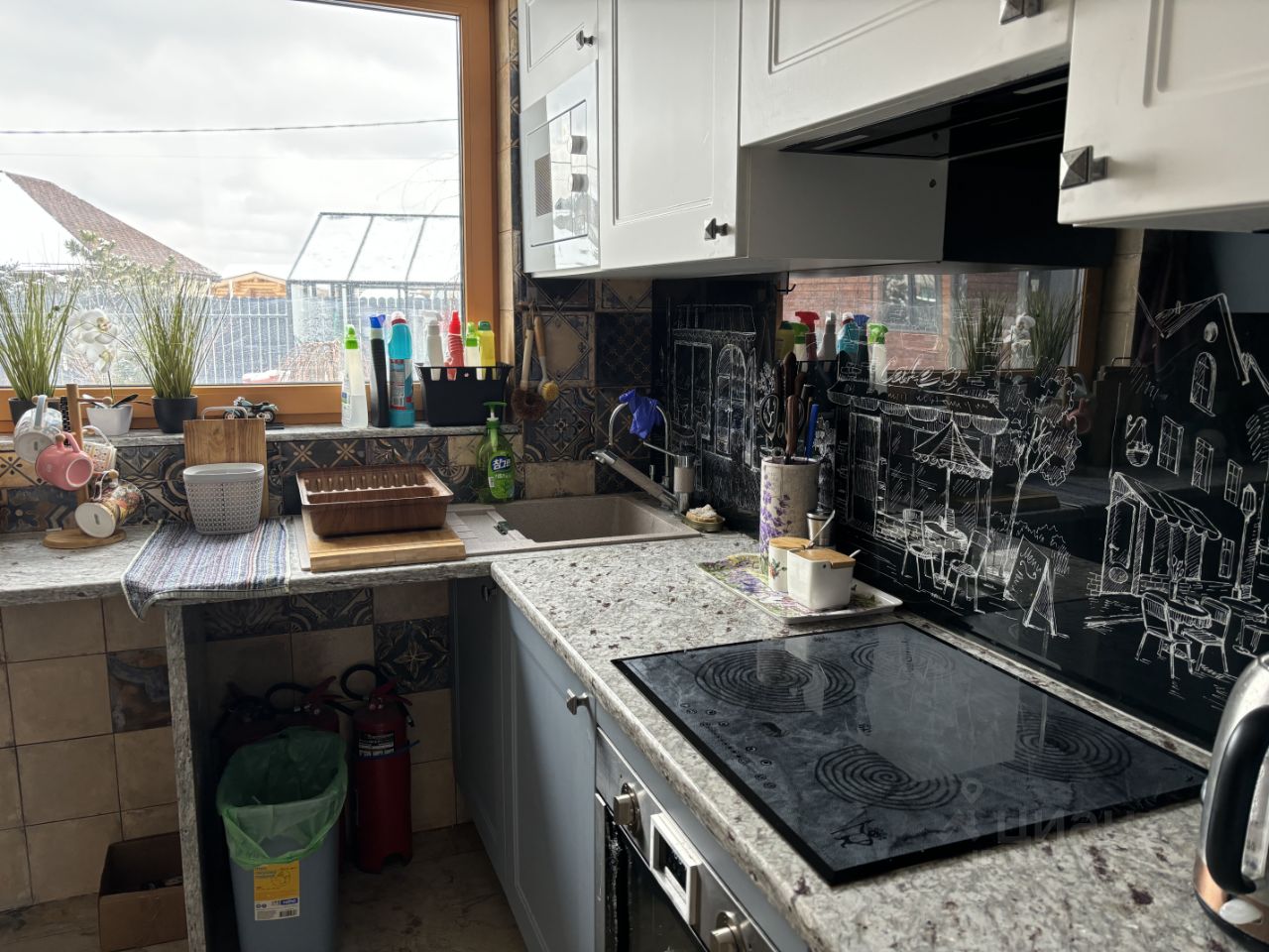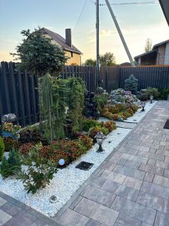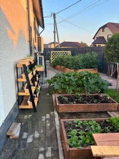На территории участка и за забором проводилось профессиональное озеленение ландшафтным дизайнером, что включает в себя посадку декоративных и фруктовых растений, в т.ч. взрослых деревьев, засадка газонной травой. На территории и за забором два фруктовых сада (яблоня, груша, черешня, абрикос, вишня, слива), кустарники (малина, смородина, голубика, ежевика, жимолость, крыжовник, облепиха). За домом есть прекрасный огородик (шесть стационарных грядок). Так же на территории участка имеется стеклянный парник (две грядки) с авто-проветриванием и инфракрасным обогревом. Вся территория дома оснащена стационарной подсветкой.
