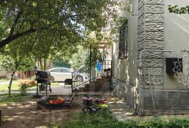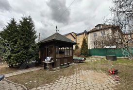 Участок 12 соток, ровный, прямоугольный. Огорожен высоким забором с калиткой и воротами. Яблони и другие садовые и декоративные деревья. Есть красивая беседка с мангалом, вольер для собак. Коммуникации все центральные, действующие: вода, электричество, канализация, магистральный газ. Отопление газовое, от котла в доме.