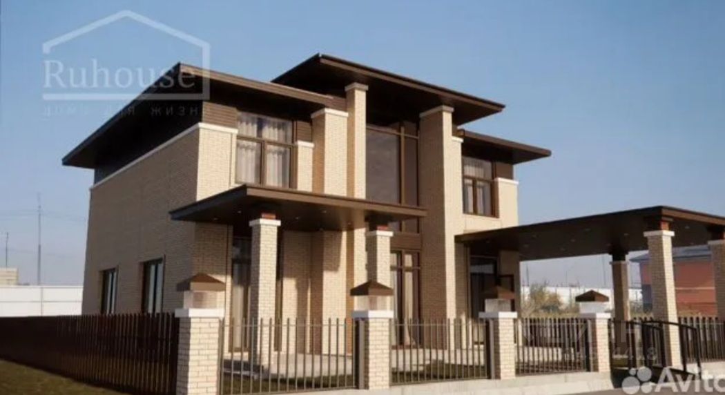 Дом 2 уровня, построен на монолитной плите (350мм) из газобетонных блоков (400мм), облицован дорогим гиперпрессованным кирпичом. Перекрытия - ж/б плиты. Кровля мягкая "Технониколь", окна Veka.