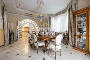 В отделке дома использованы самые ЛУЧШИЕ и дорогие природные материалы, такие как шелк, редкие породы дерева, различные сорта мрамора и гранита. Мебель в дом покупали у итальянских фабрик PROVASI и FRANCESCO MOLON. Техническое и инженерное наполнение дома тоже выполнено на самом высоком уровне центральная система кондиционирования, приточно-вытяжная вентиляция системы daikin, котельная BUDERUS с автоматической системой управления, бытовая техника от GAGENAU и MIELE.