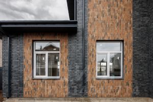 Все коммуникации центральные, заведены в дом и подключены. Фасад дома сделан из глиняной клинкерной плитки. Крыша мягкая черепица. Установлен забор из штакетника, автоматические ворота, калитка, площадка для двух машин. Дом возведен из кирпича (толщина стен 50см), на свайно-ростверком фундаменте.