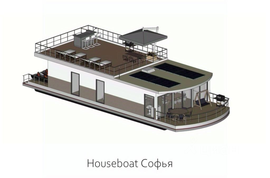 Дом, Дачу на воде продаю. Автономный трёхкомнатный Хаусбот с возможностью круглогодичного проживания продаю. Может стоять на воде в любом месте не на судовом ходу. Укомплектован под ключ, с внутренней и внешней отделкой, с установленными системами водоснабжения и очистки, автономной канализации, автономного отопления, автономного электроснабжения 6 кВт, с мебелью, бытовой техникой, кухонным и мягким инвентарём. Два мотора по 70 л.с. пр-во Япония, три подруливающих электромотора, автоматический резервный генератор 8 кВт, картплоттер. Общая площадь тёплых помещений 89 м2, Кухня-гостинная 33 м2, 4 каюты-комнаты 8 м2, два С/у 6 м2, Сауна 8 м2, коридор с тамбуром 9 м2. Везде тёплые полы. Верхняя палуба 93 м2, нижняя палуба 44 м2. Встроенная мебель и бытовая техника согласно поэтажных планов. Хаусбот является маломерным судном, потребуется регистрация в Гимс, для передвижения на нём по водным путям необходимы права Гимс, для проживания на месте стоянки прав не требуется. На заказ. Срок строительства 8 мес. В наличии есть модель меньшей площади и цены.