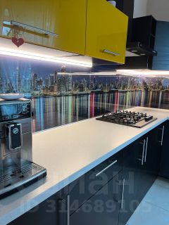 Кухня с панорамным фартуком, встроенная техника, посудомоечная машина, кофемашина
