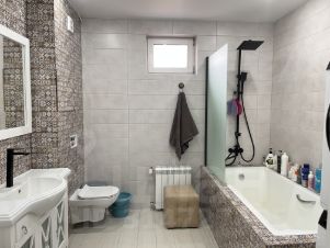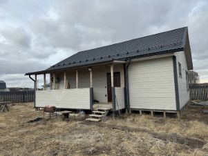 Сам дом выполнен по каркасной технологии , в его основе брус строганый и доска строганая. Фундамент дома - винтовые сваи. Стены газоблок. Заведены все необходимые коммуникации, а именно: