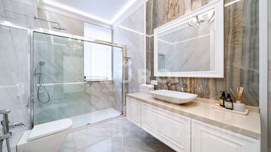 Дом оснащен системой "Умный дом" с функцией управления через смартфон. Климат-контроль, центральная приточно-вытяжная вентиляция и кондиционирование поддерживают оптимальный микроклимат. Шикарная мраморная лестница с подогревом ступеней гармонично дополняет убранство. Благодаря центральным коммуникациям в доме комфортно круглый год: газ, электричество, водоснабжение (из двух местных артезианских источников глубиной в 125 метров) и канализация.