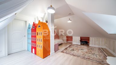 Дом построен из высококачественных материалов по надежной современной технологии и идеально подходит для проживания на природе большой семьи. В доме выполнена превосходная отделка с применением строительных и отделочных материалов европейских производителей. Дизайнерский интерьер в светлых тонах укомплектован стильной мебелью, бытовой техникой и освещением премиальных брендов. В доме установлена сантехника ведущих производителей. Большая площадь остекления, второй свет в гостиной и высокие потолки делают дом светлым, просторным и уютным.