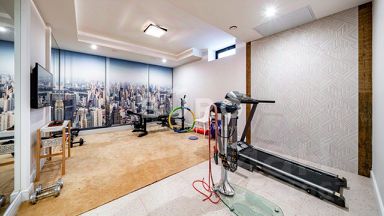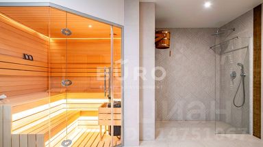 Цокольный этаж: тренажерный зал, библиотека, которая трансформируется в кинозал, постирочная, СПА-зона с сауной и массажным кабинетом с зоной для маникюра.