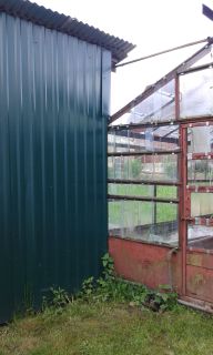 Есть хоз. блок 6 кв.м. и сварная металлическая теплица 36 кв.м. (11 х 3,3 м), хоз.блок и теплица на бетонных сваях. Есть биотуалет.