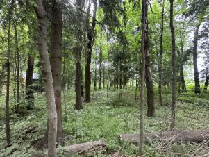 Участок 10 соток с хорошей подъездной дорогой и вековыми дубами и елями.