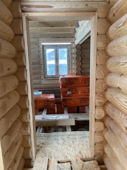•Стены все обработаны и окрашены внутри с снаружи, осталось только доделать пол и можно заселяться, все коммуникации заведены в дом