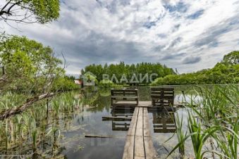 Участок 8,5 соток. На участке есть многолетние ели и множество других деревьев, установлена система полива, ворота, свой выход к водоему, территория огорожена забором со всех сторон, между соседями рабицей, а со стороны улицы профлистом. Установлена внешняя подсветка на участке и доме.