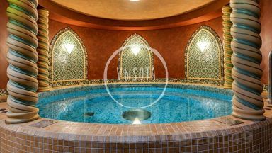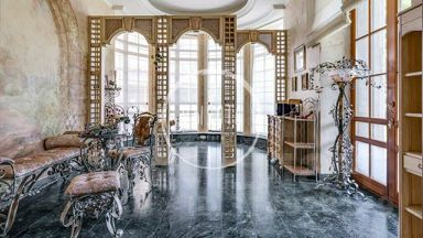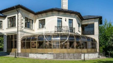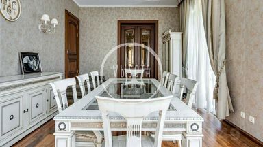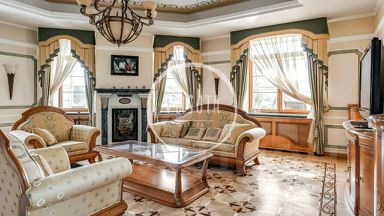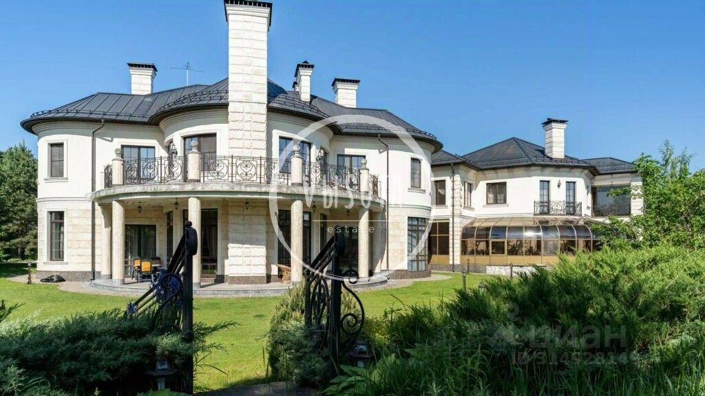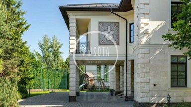 Предлагается к продаже великолепная резиденция, выполненная в классическом стиле, общей площадью 1200 кв.м с отдельно стоящим зданием гаража с квартирой для персонала 200 кв.м. На участке выполнен ландшафтный дизайн с дорожками, освещением и альпийской горкой, хвойными и лиственными, фруктовыми деревьями, кустарниками и растениями, обустроена спортивная и детская площадка, крытая барбекю. Внешний фасад дома выполнен из натурального песчаника, украшен мозаичными панно, материал крыши - медь, окна - витражи. Во внутренней отделке использованы дорогие материалы: дуб, мрамор; ограждение лестниц и люстры из бронзы. В доме установлена система кондиционирования и вентиляции. Дом состоит из 2-х полноценных домов связанных между собой.