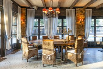 Внутри дом оформлен в светлых натуральных оттенках, придающих атмосфере теплоту и уют. Каждый уголок дышит гармонией: мягкие кремовые и бежевые тона в сочетании с дизайнерской мебелью от известных брендов подчеркивают изящество и стиль. Мягкие диваны и кресла, элегантные столы из редких пород дерева и тщательно подобранные аксессуары создают идеальное пространство для отдыха и приема гостей.